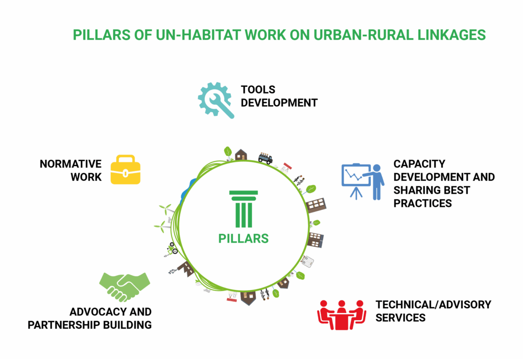 Recognizing the importance of integrated territorial development for achieving sustainability, UN-Habitat is undertaking a comprehensive effort to develop user-friendly tools and meticulously gather a wide array of insightful global case studies. This valuable knowledge base is showcased in the continuously evolving “Compendium of Inspiring Practices on Urban-Rural Linkages,” a key resource that vividly illustrates the diverse and far-reaching applications of the Urban-Rural Linkages Guiding Principles (URL-GP) across various sectors and through the power of multi-stakeholder collaborations. By making these resources readily available, UN-Habitat seeks to empower national and subnational authorities, development organizations, civil society and other stakeholders to effectively apply the URL-GP within their specific contexts, ultimately contributing to the realization of more inclusive and balanced territorial development.